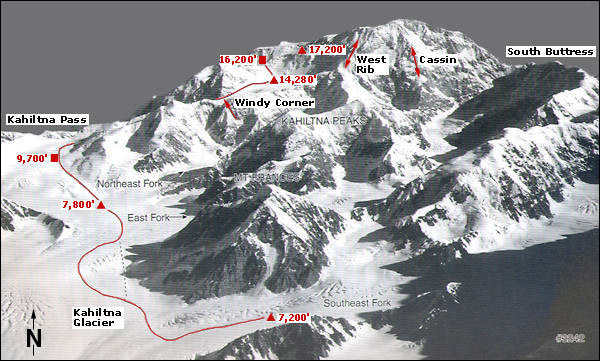 Výstupová trasa West Buttress (Washburn Route, Alaska grade 2, cesta Západním pilířem) je nejoblíbenější cestou na Denali a používá ji nejvíce horolezců. Nejlepší podmínky k výstupu jsou od začátku května do půlky července. Cestou k vrcholu je 4-5 výškových táborů. Cesta začíná dlouhým úsekem po ledovci Kahiltna přes první 2 tábory až do tzv. předsunutého základního tábora. Z toho pak většinou přes jeden tábor až na vrchol. Více viz. Popis nejvyužívanější výstupové trasy West Buttress (Washburn Route), nebo: